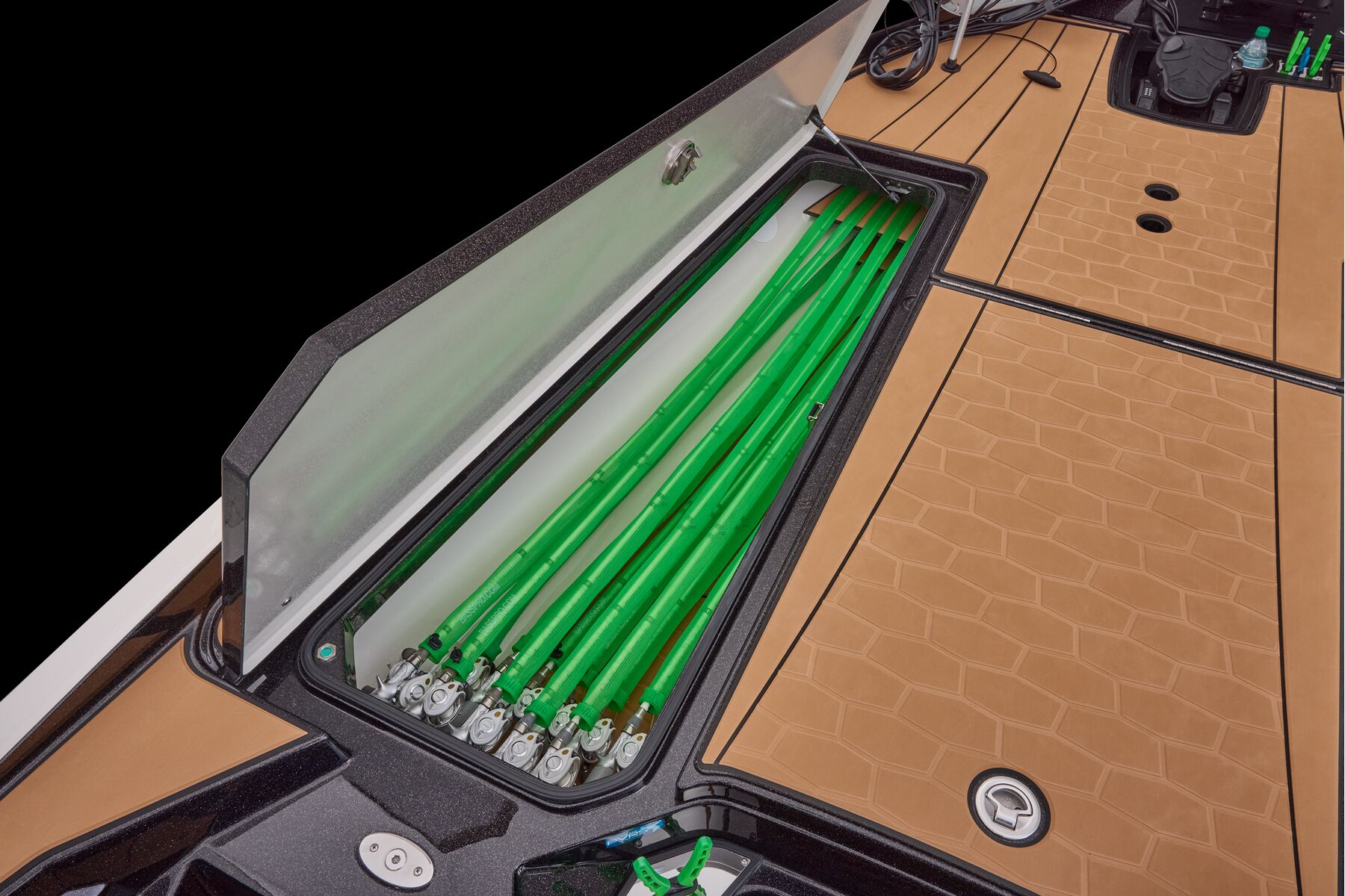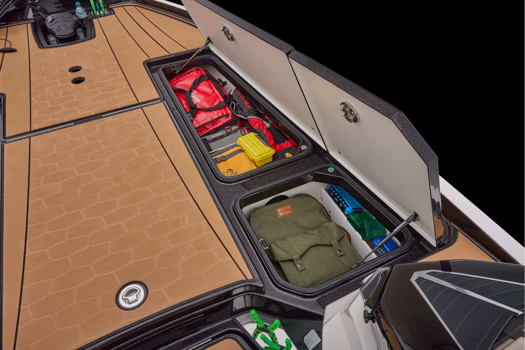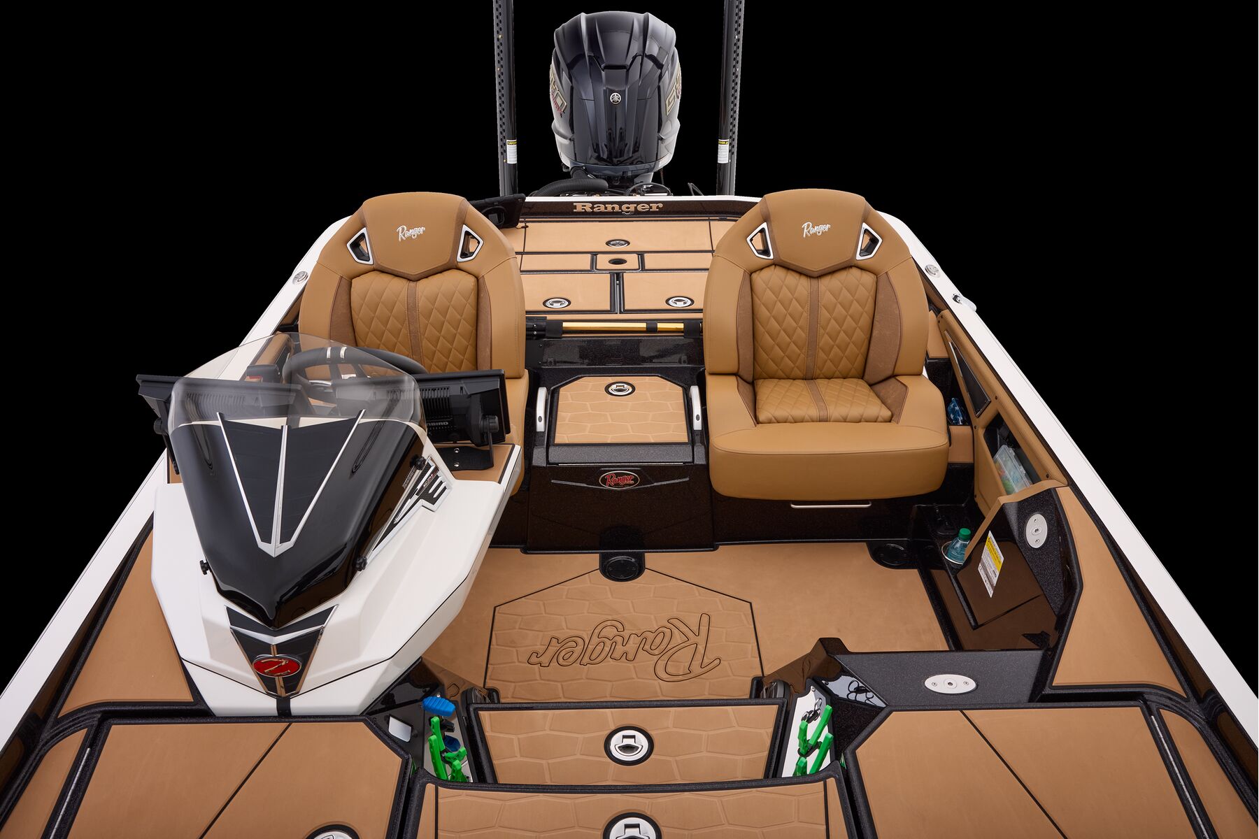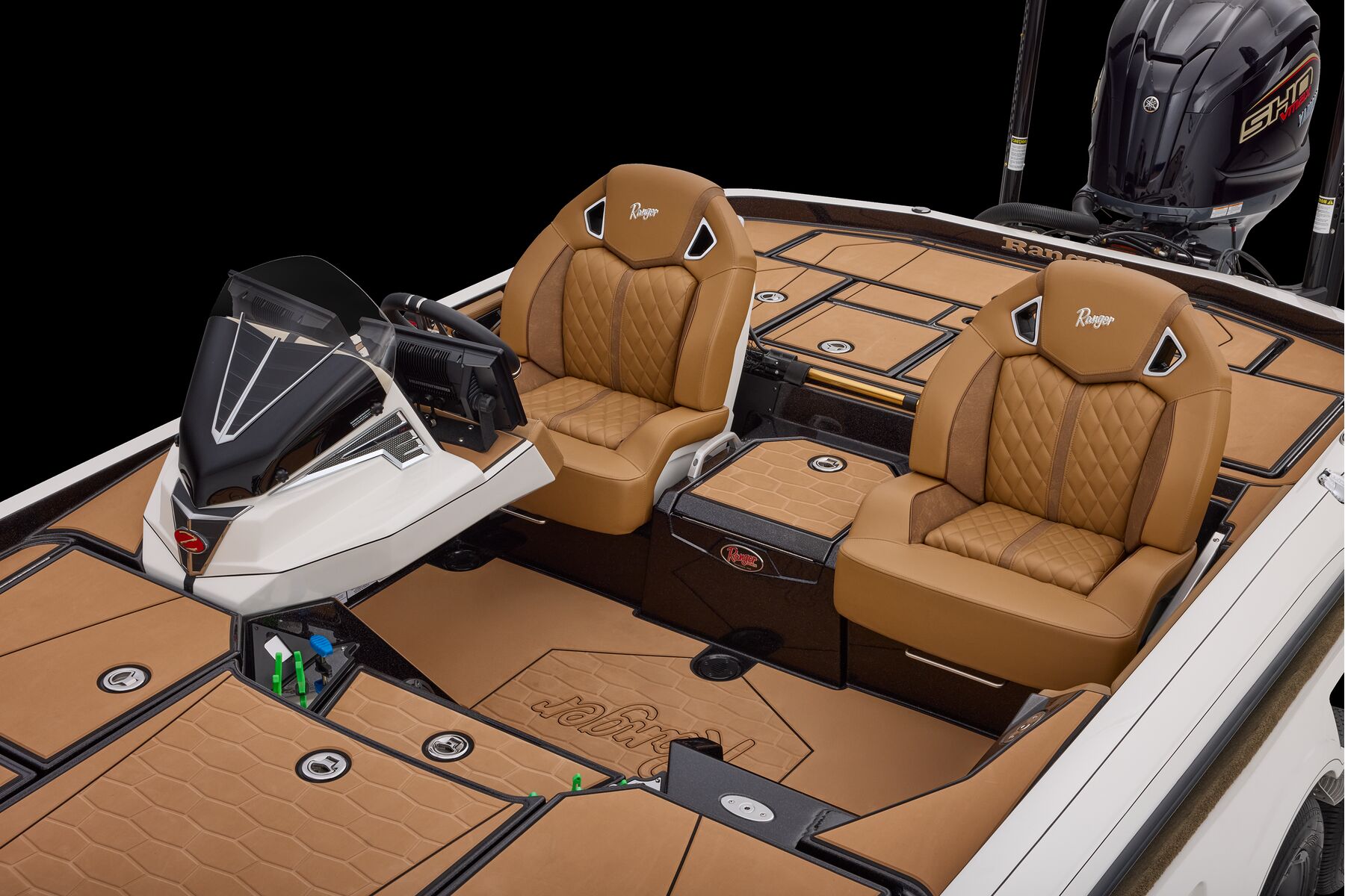 Never has more comfort, style, capability, and technology been packed into one bass boat. The all-new Ranger Z521R Ultra stands apart with one-of-a-kind non-skid Traction pad flooring accented by legendary Comanche stripes, blending beauty and function. Air-Ride Cloud 9™ Soft Ride Seating delivers unmatched comfort in rough water and cold mornings, with interior color packages available in Buckskin, Carbon, and Sandstone. Every inch is designed for refinement, from push-to-close latches and color-matched storage mats to the Ranger Echelon™ rod storage system.