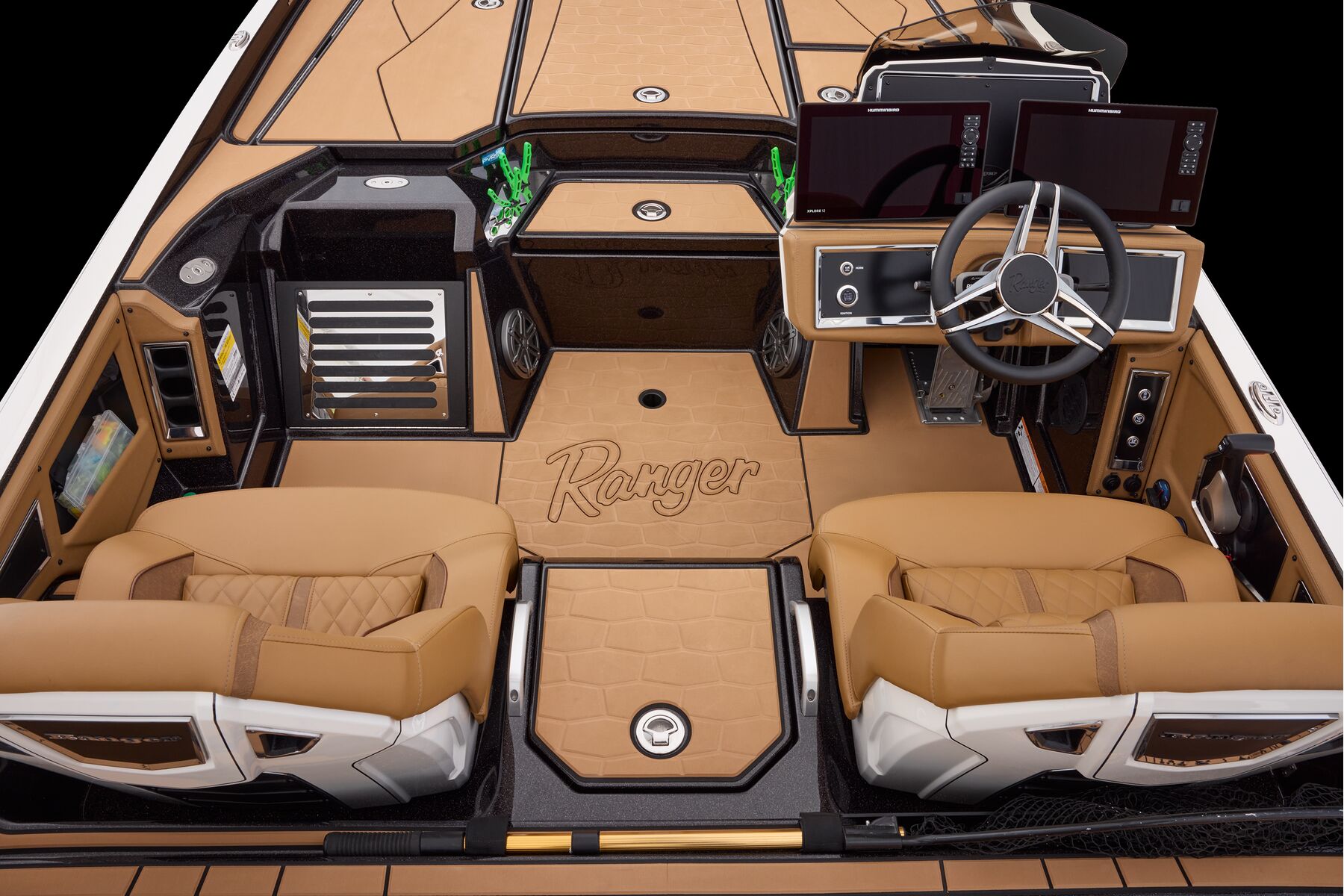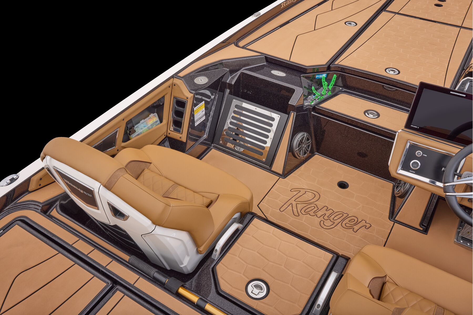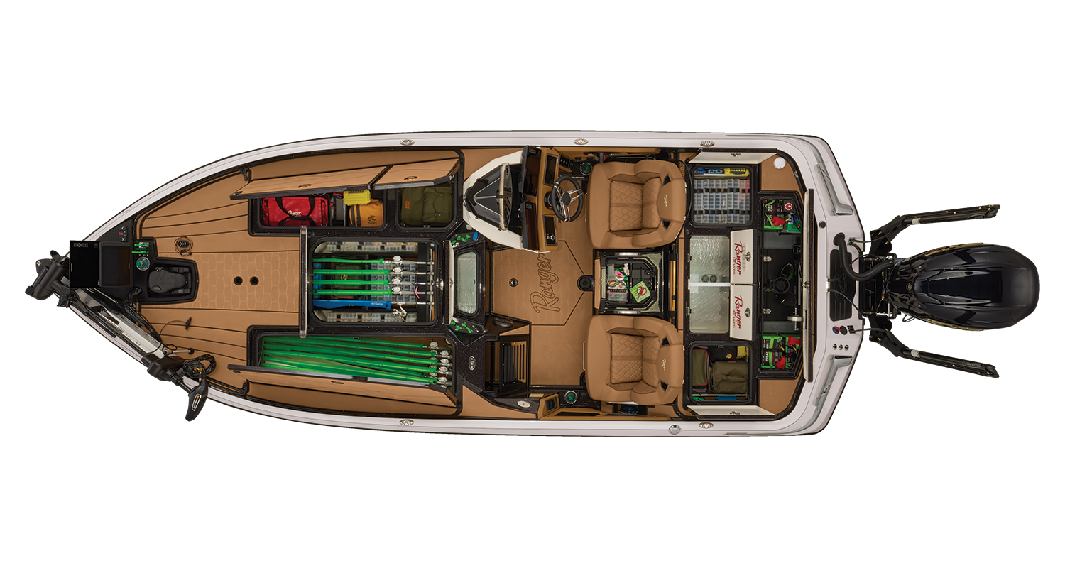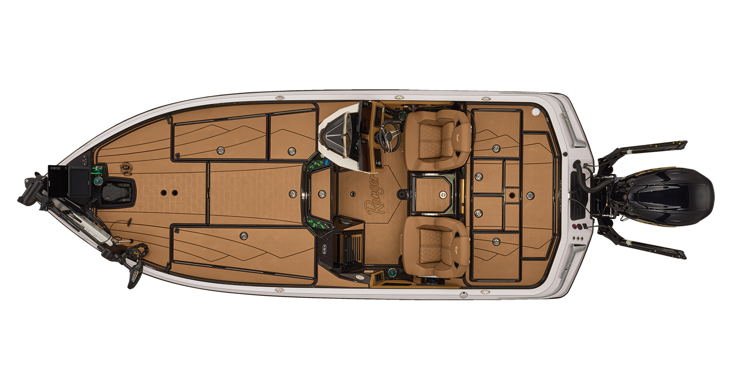 At the helm, innovation takes center stage with the fully remastered console featuring the Ranger RIDE touchscreen interface, digital switching for total control of your trolling motor, outboard, lighting, and security. A leather-wrapped steering wheel connects you to a computer-scanned hull delivering precision handling and an unparalleled ride. This is more than a bass boat—it’s the pinnacle of design, performance, and prestige.