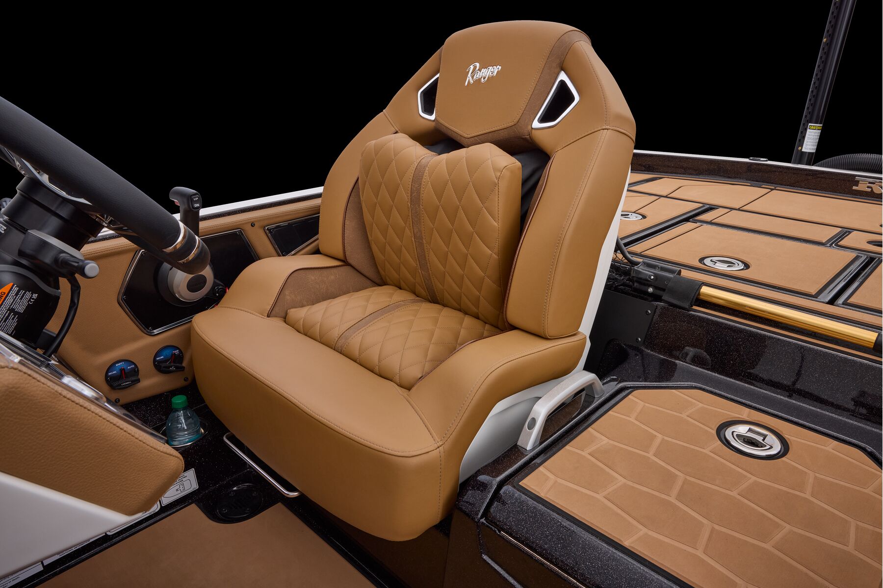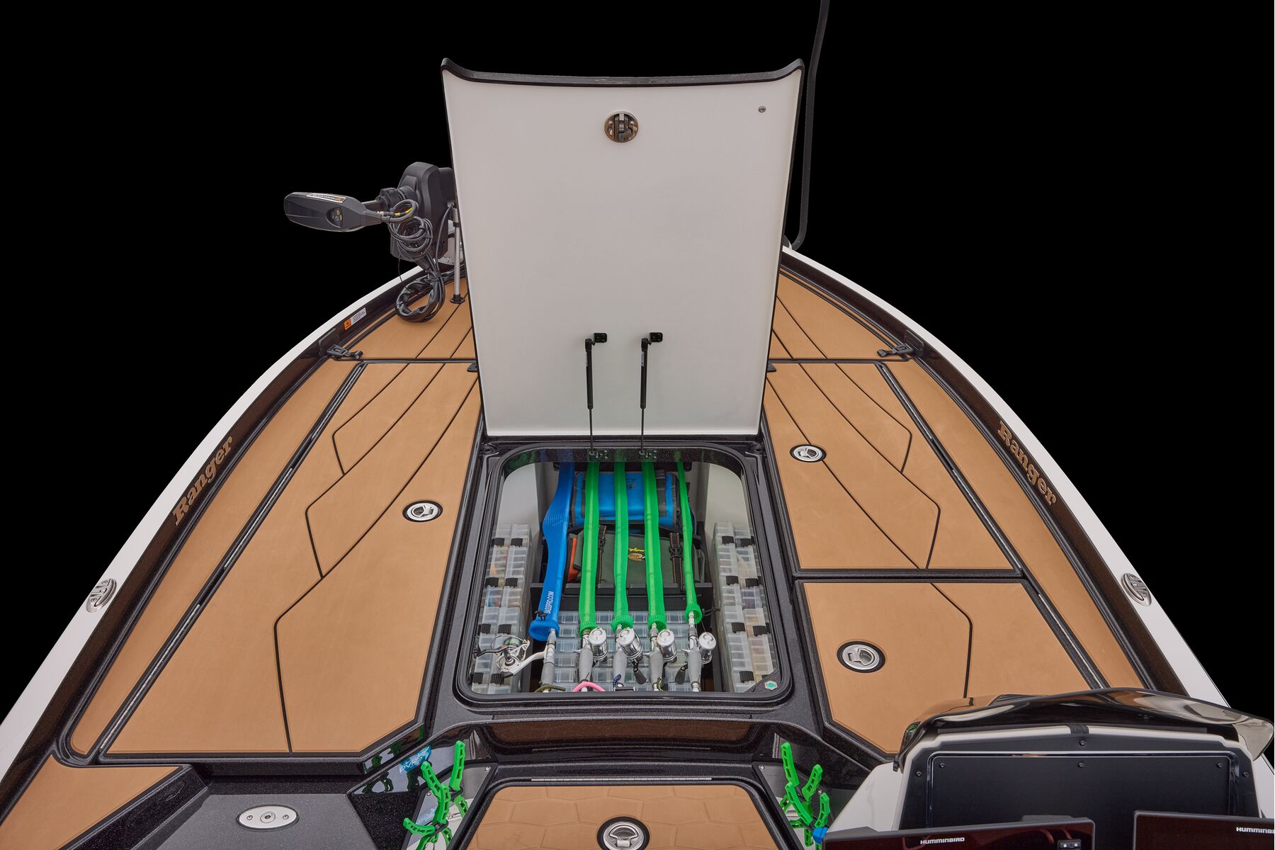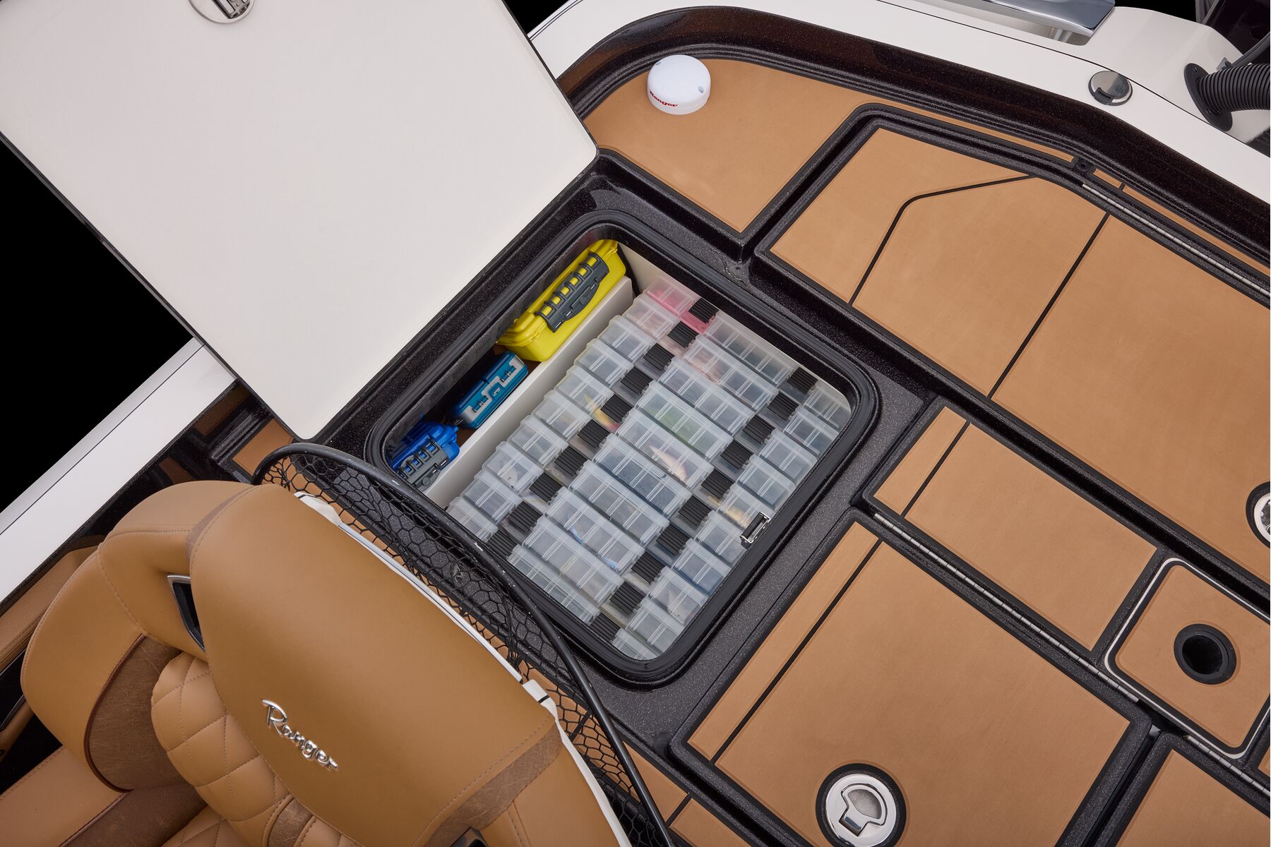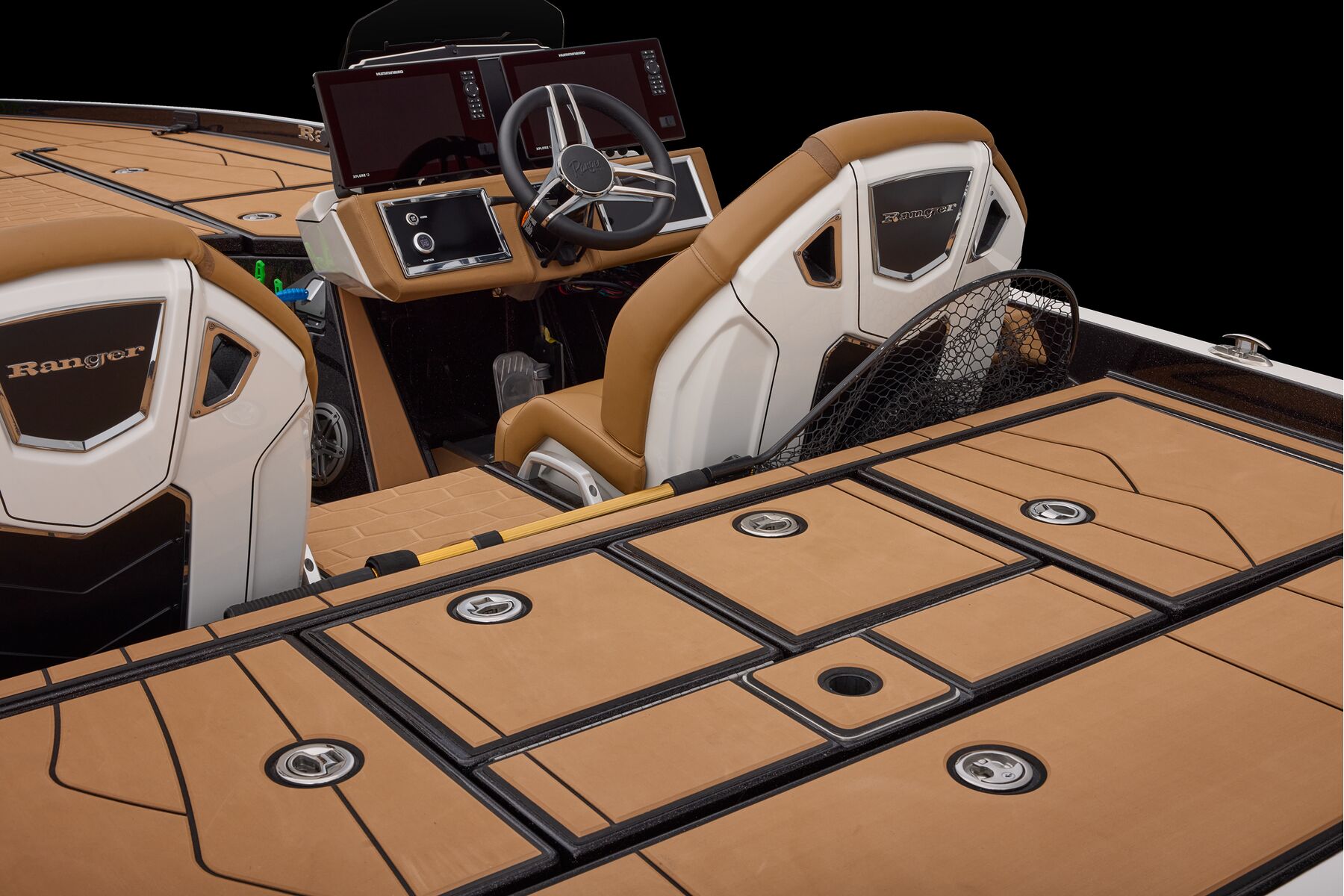 At the helm, innovation takes center stage with the fully remastered console featuring the Ranger RIDE touchscreen interface, digital switching for total control of your trolling motor, outboard, lighting, and security. A leather-wrapped steering wheel connects you to a computer-scanned hull delivering precision handling and an unparalleled ride. This is more than a bass boat—it’s the pinnacle of design, performance, and prestige.
