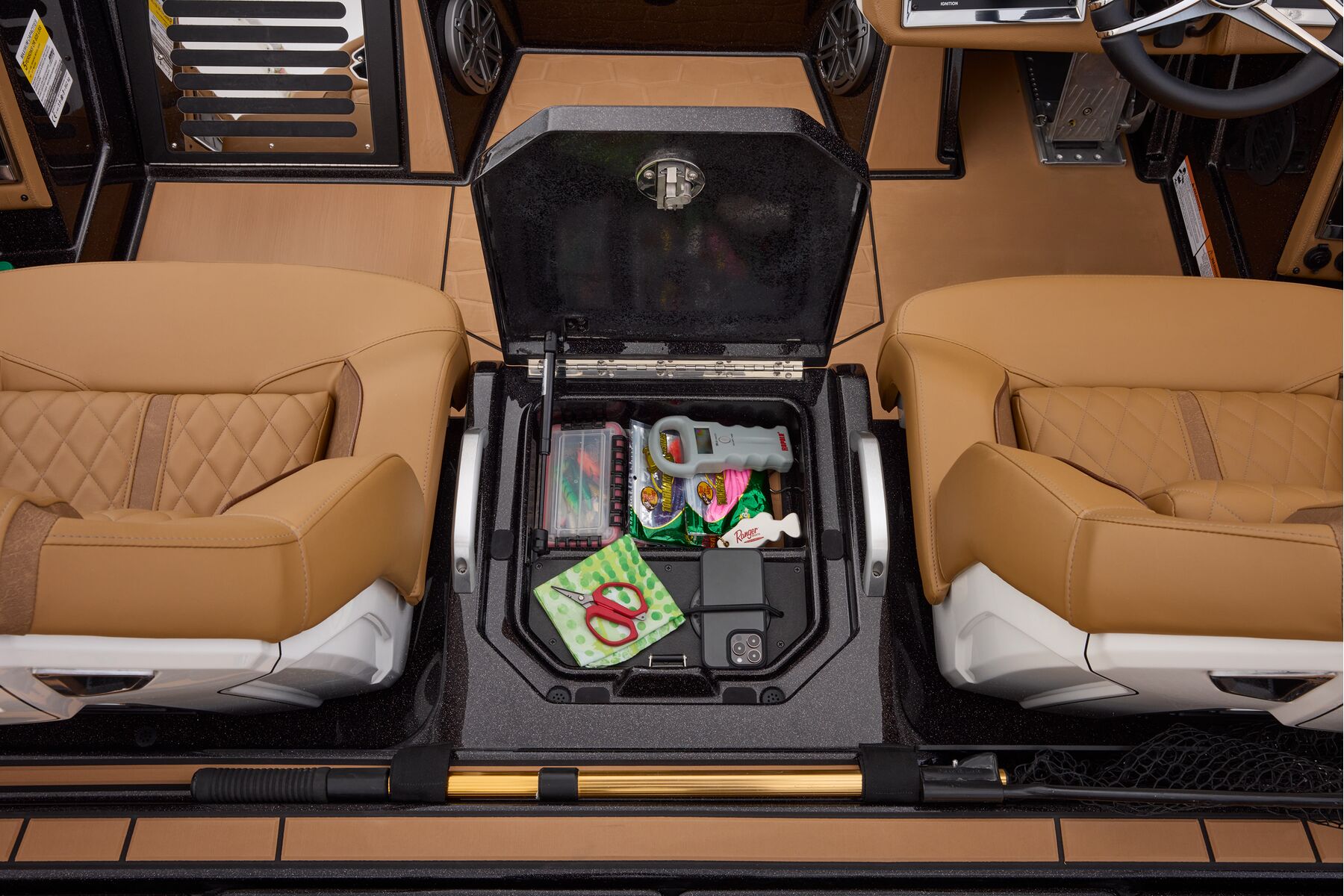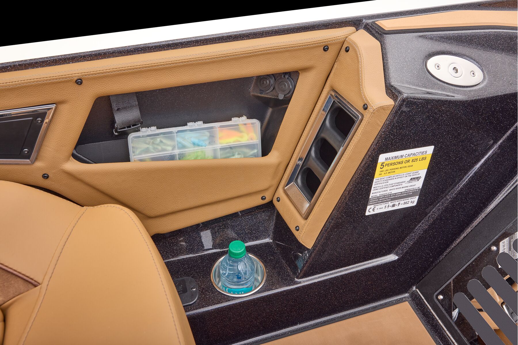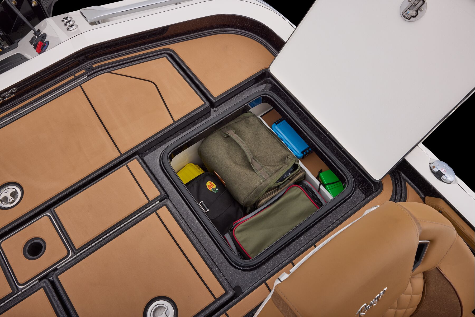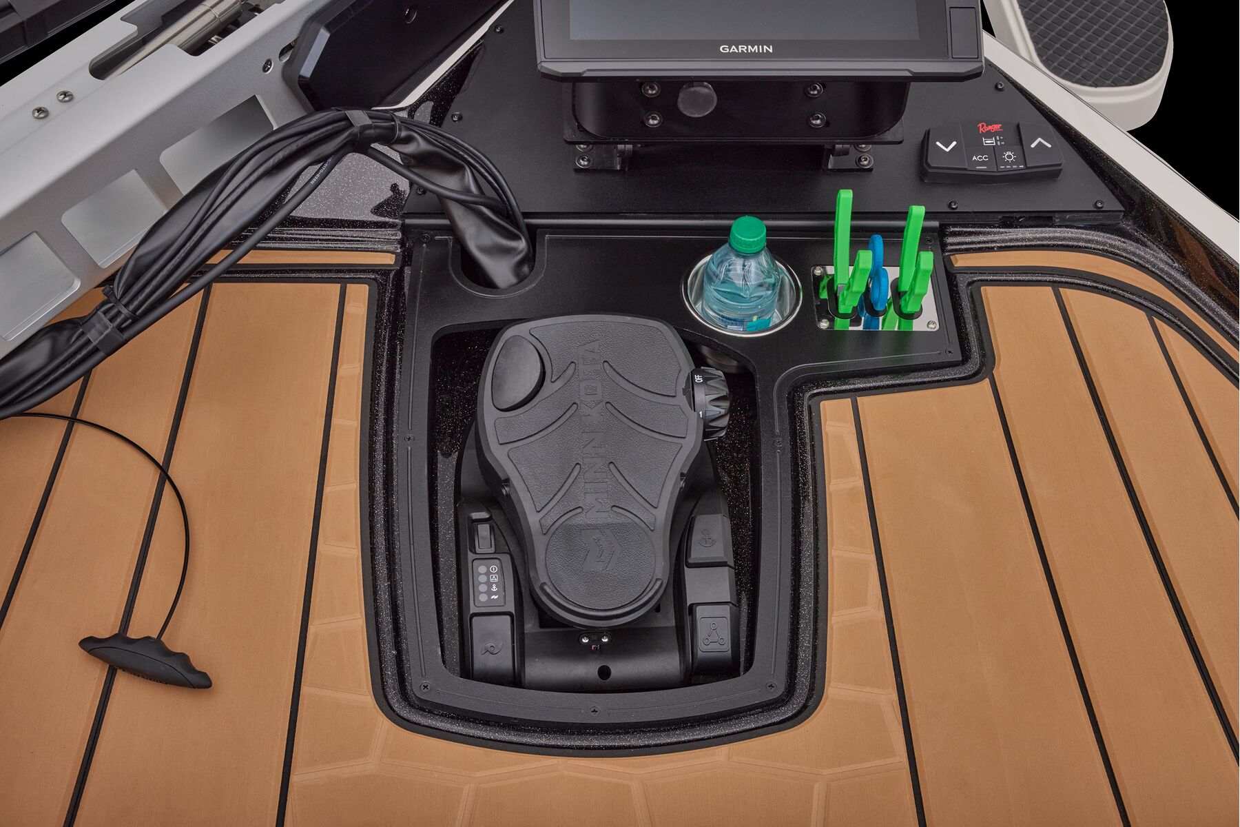 At the helm, innovation takes center stage with the fully remastered console featuring the Ranger RIDE touchscreen interface, digital switching for total control of your trolling motor, outboard, lighting, and security. A leather-wrapped steering wheel connects you to a computer-scanned hull delivering precision handling and an unparalleled ride. This is more than a bass boat—it’s the pinnacle of design, performance, and prestige.
