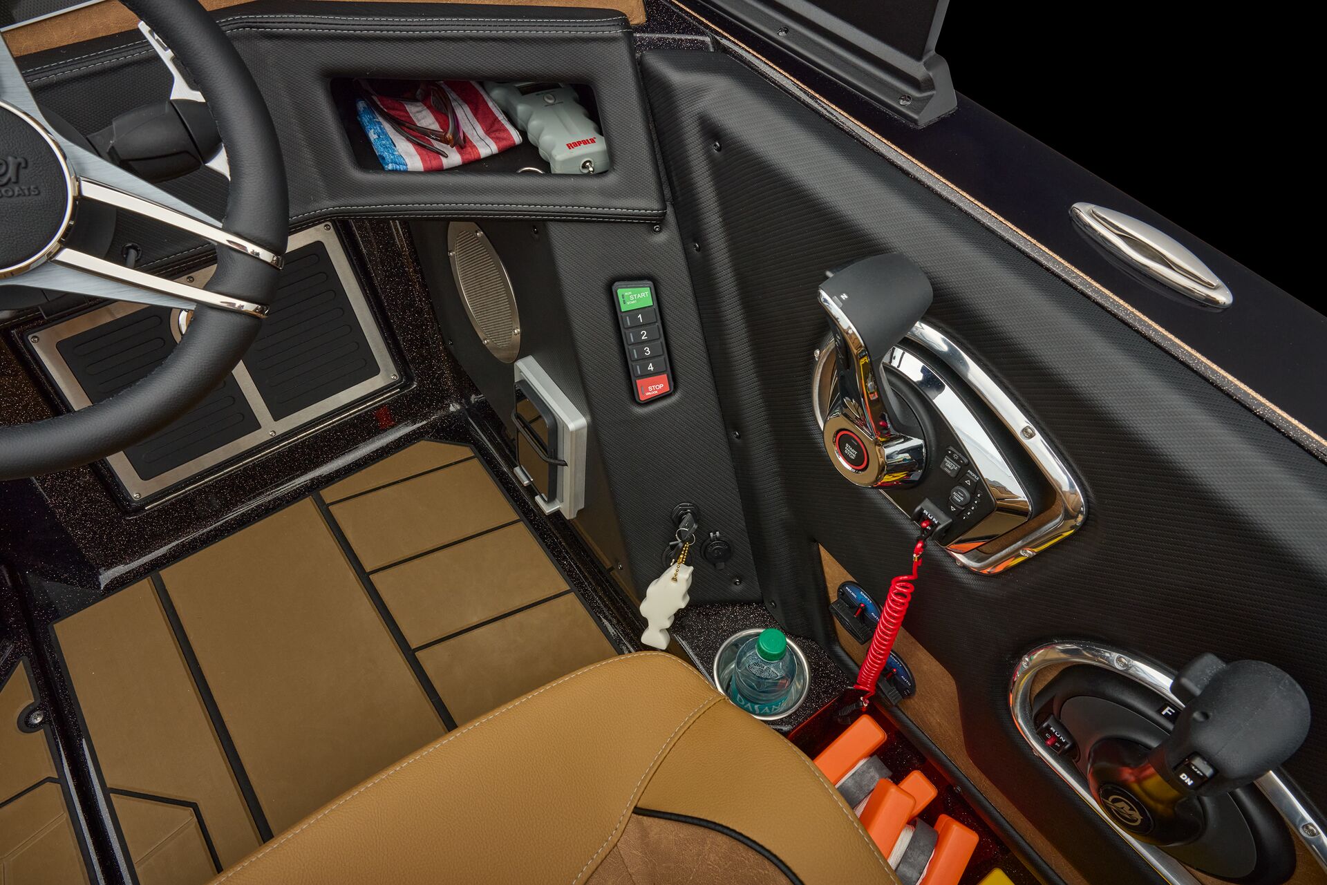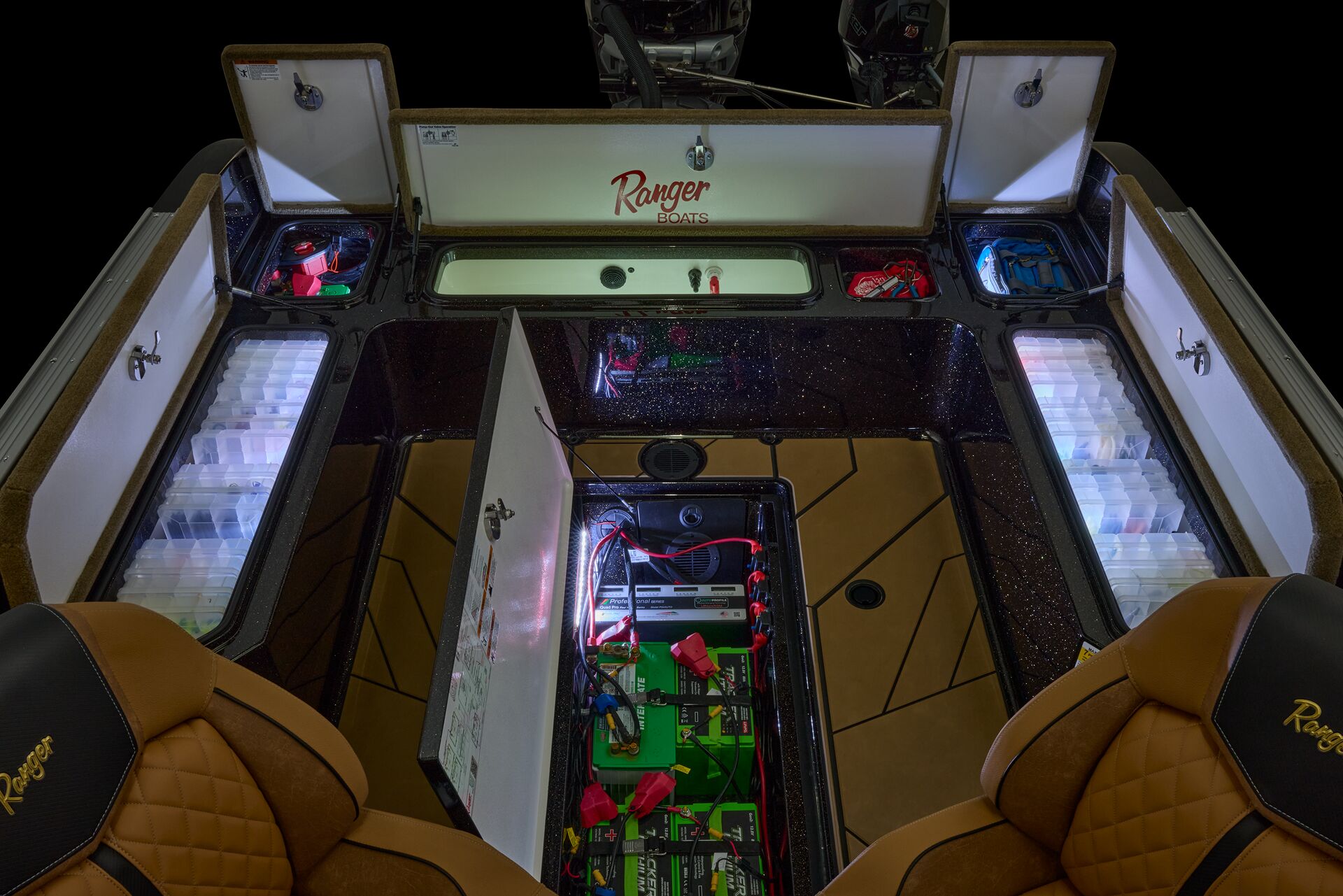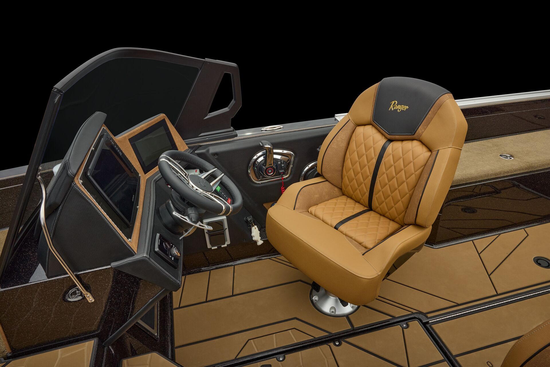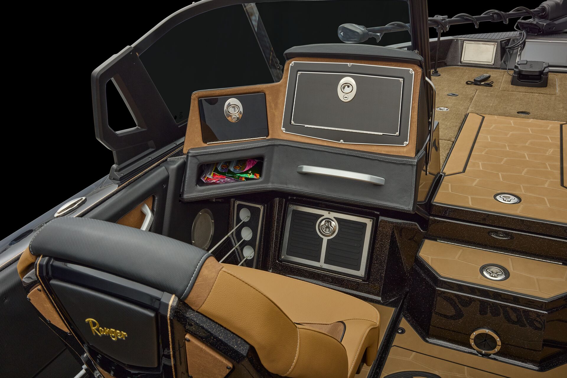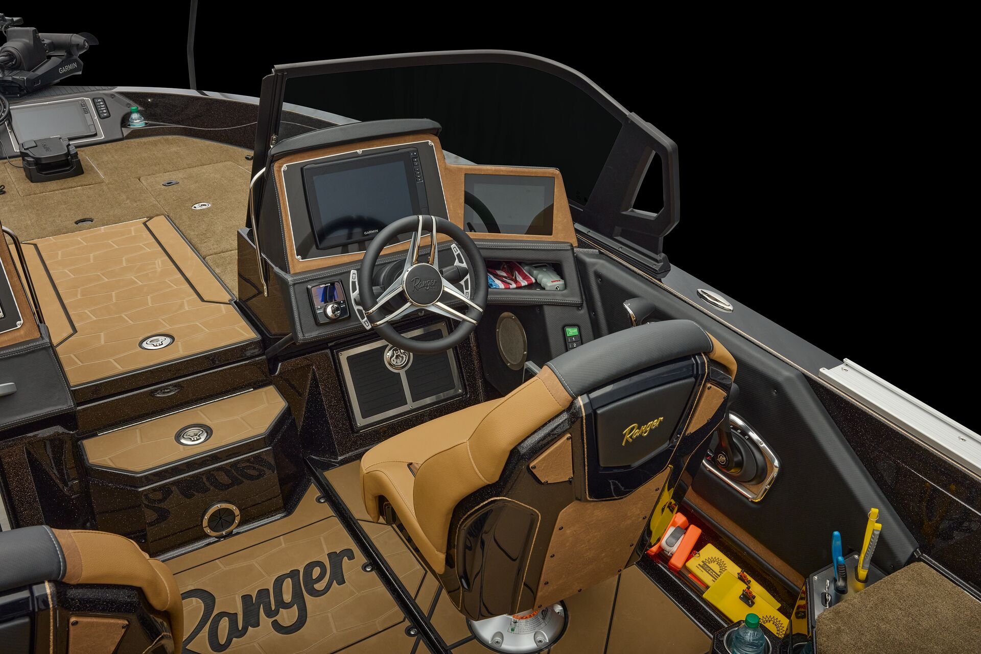 consoles on the market; the driver’s features the Ranger R.I.D.E. touchscreen multifunction display, a leather-wrapped steering wheel, and the electronics of your choice, while the passenger’s offers twin gloveboxes, a day box, and underfoot storage.