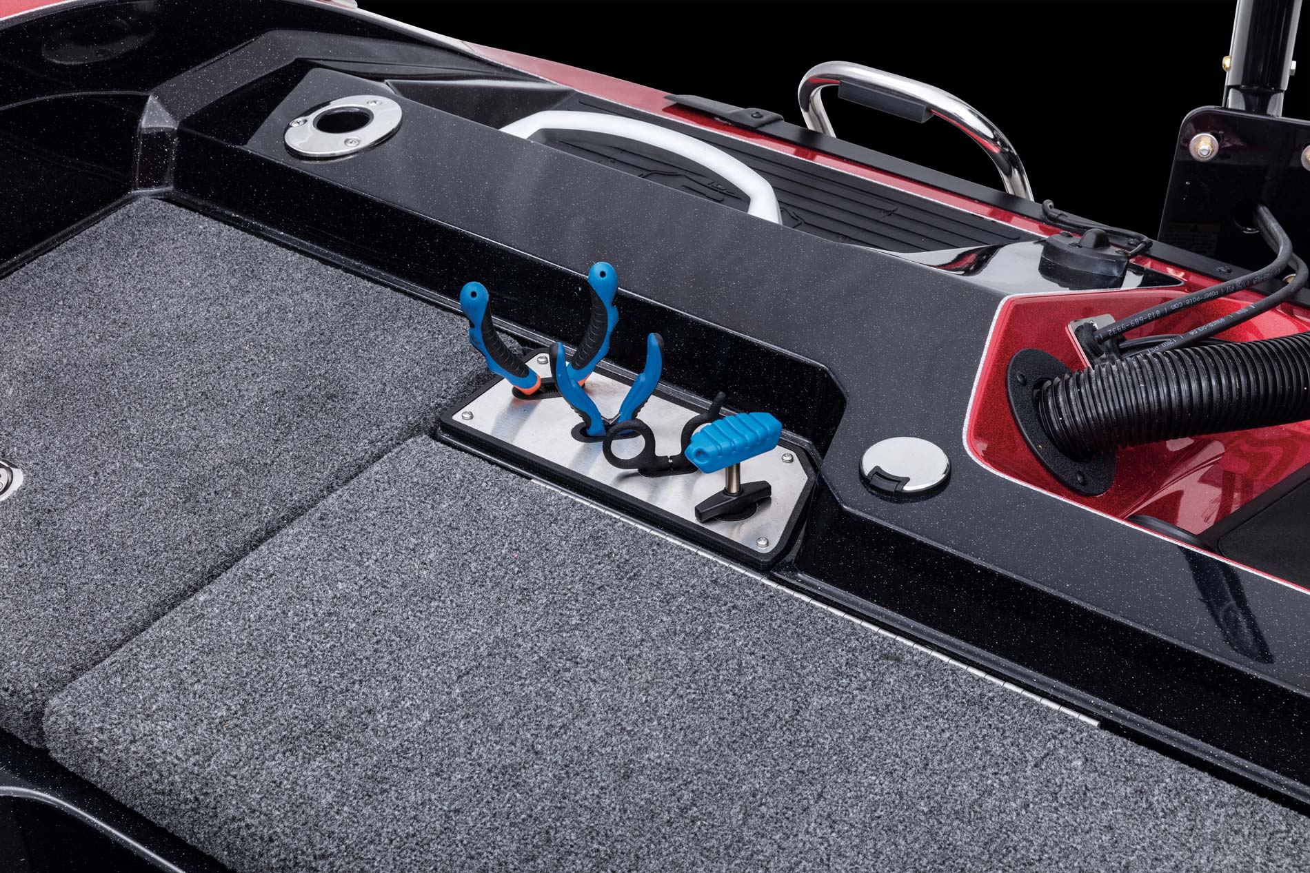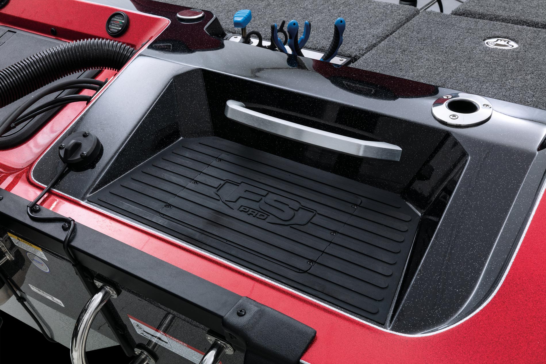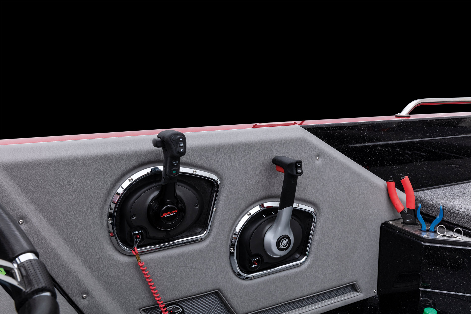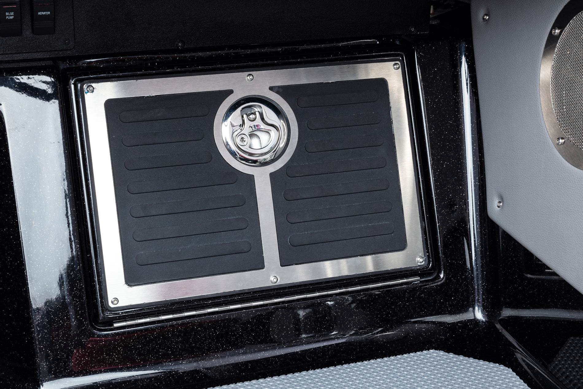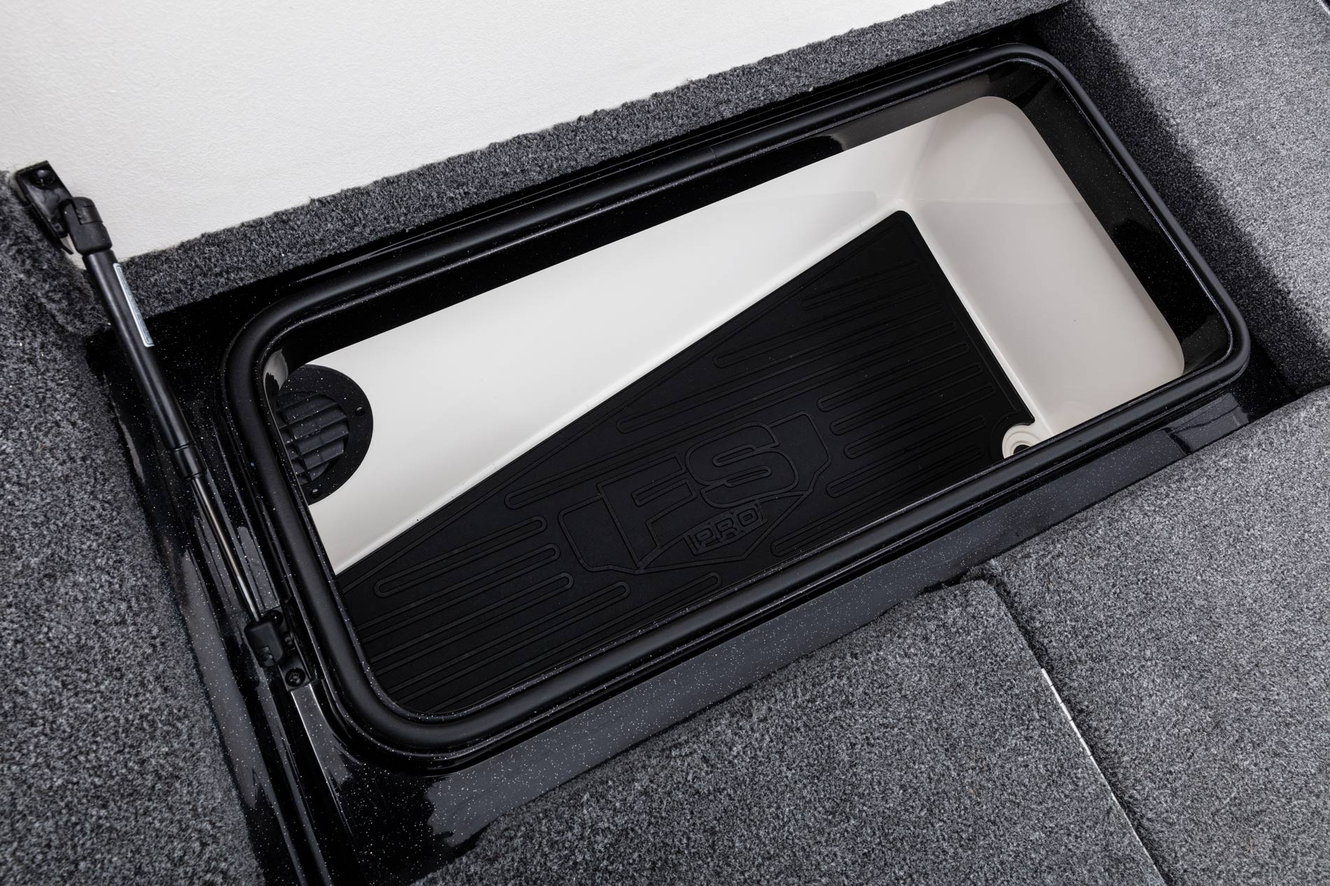 Inside, a full non-skid cockpit boasts the largest storage capacity we’ve ever featured in a 21-foot Deep V. Store dozens of tackleboxes in the saddle stows and scores of rods up to 8’6” in the lockable center and port rod boxes. Twin passenger glove boxes and a driver’s footrest storage keep essentials hidden and dry while multiple tool and cup holders keep other necessities handy.