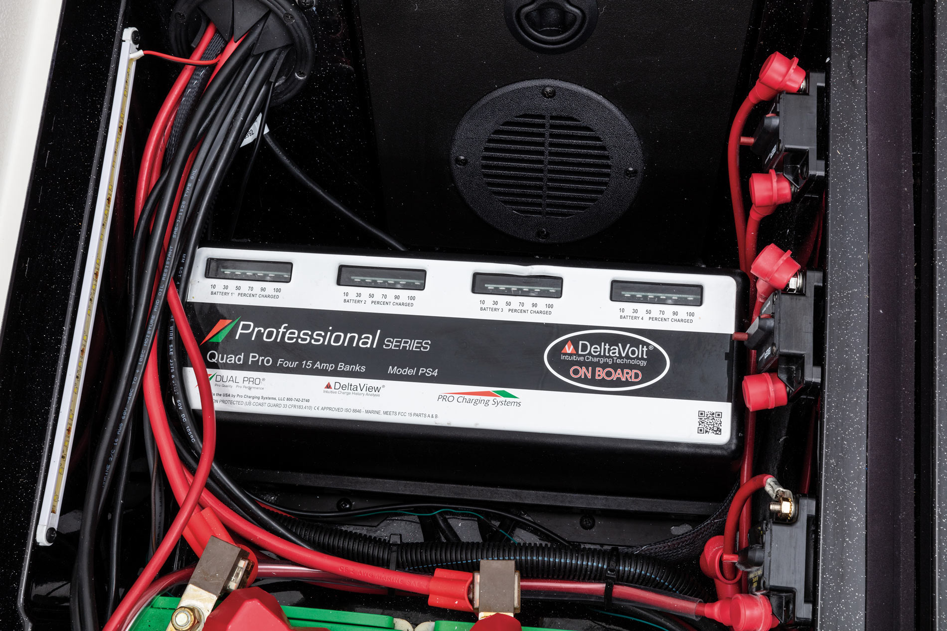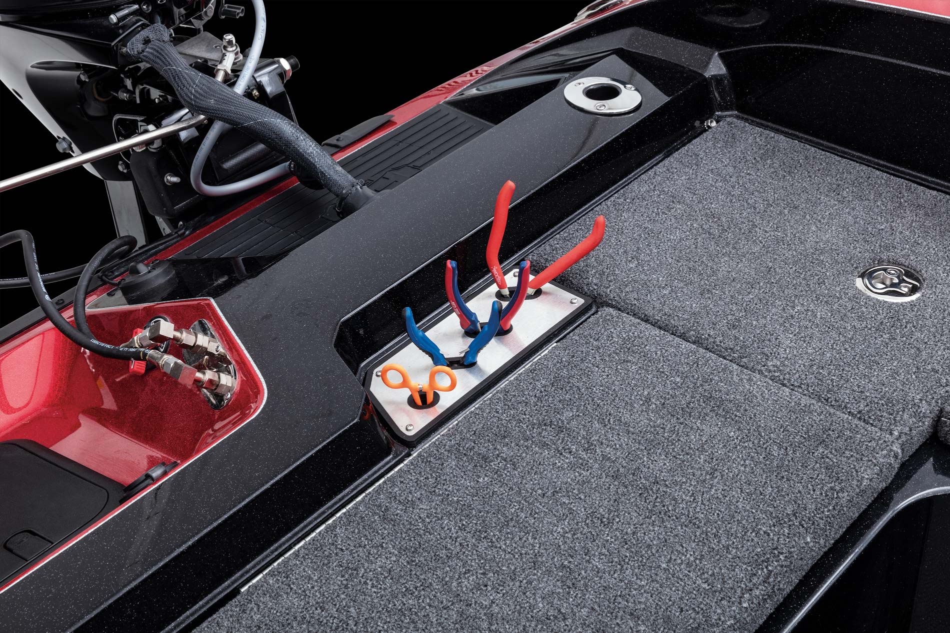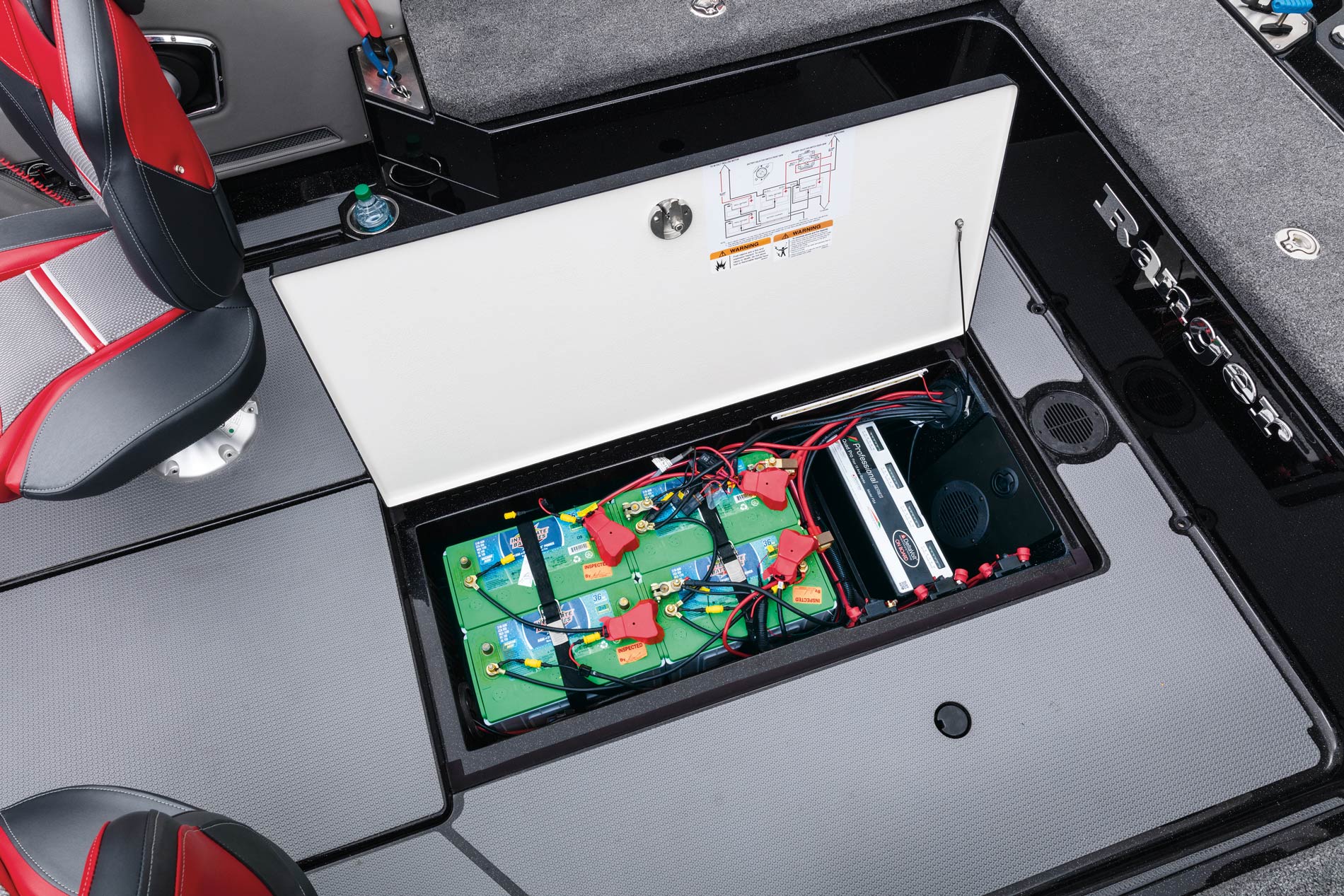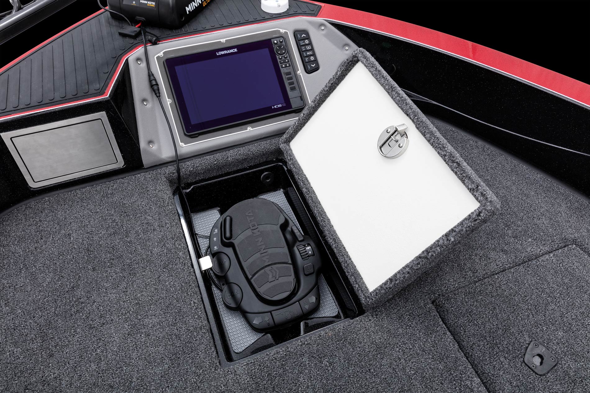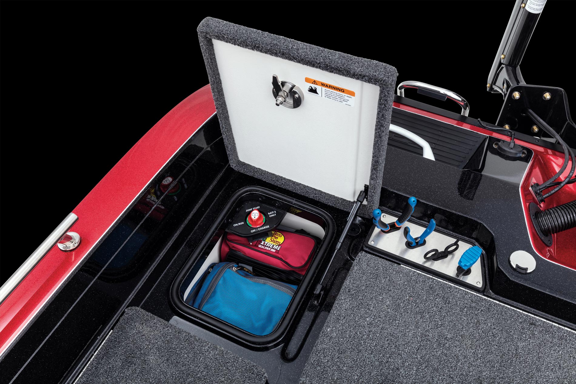 Inside, a full non-skid cockpit boasts the largest storage capacity we’ve ever featured in a 21-foot Deep V. Store dozens of tackleboxes in the saddle stows and scores of rods up to 8’6” in the lockable center and port rod boxes. Twin passenger glove boxes and a driver’s footrest storage keep essentials hidden and dry while multiple tool and cup holders keep other necessities handy.