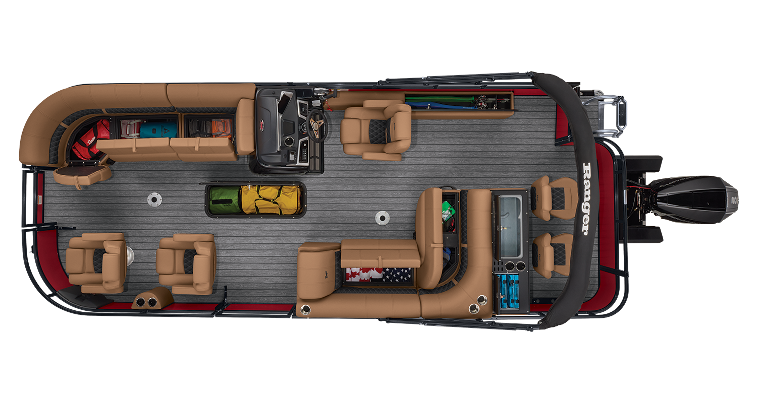 Never again struggle to determine what gear you want to bring: take it all. The Ranger Reata Fish & Cruise pontoons blend purposeful comfort and luxury with premium, unmistakably Ranger fishing features. Enjoy rich seating and lockable rod storage, an easy-lift Bimini with dual livewells, and handmade fishing seats with ample power for watersports. You may not have enough time to do it all, but you'll have the capability.