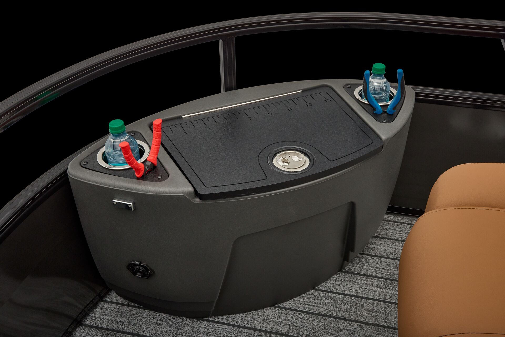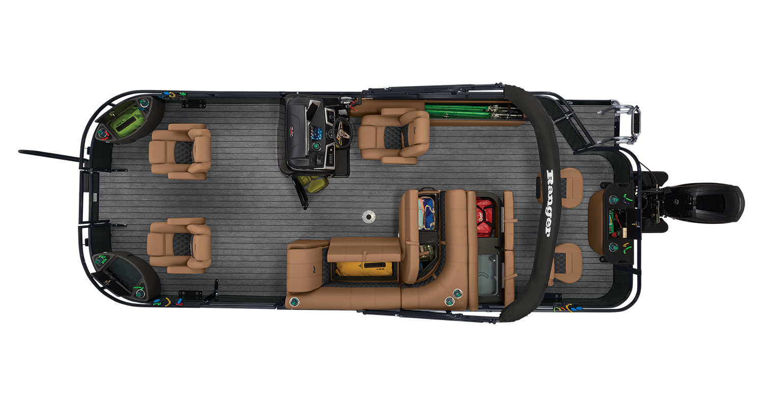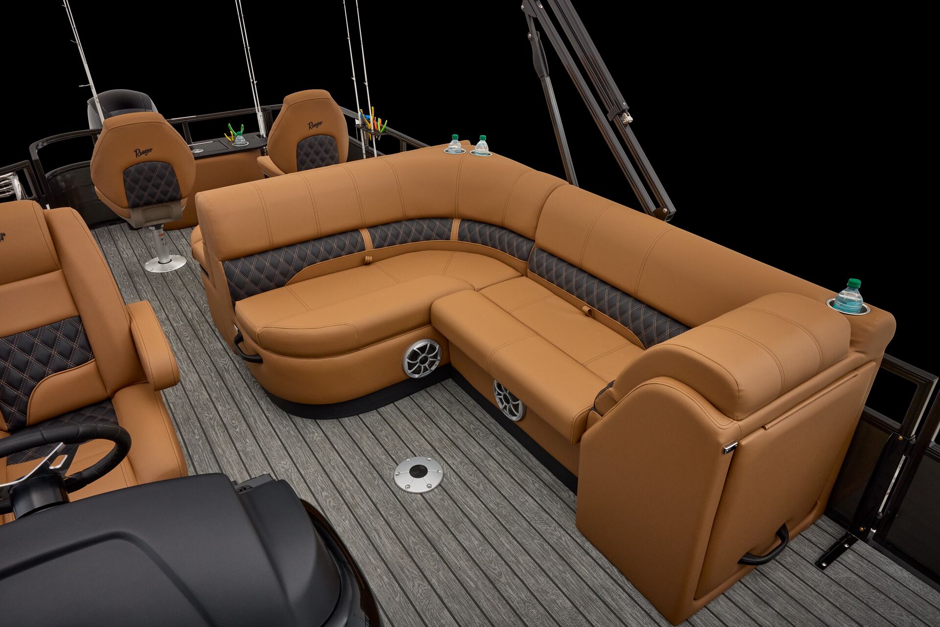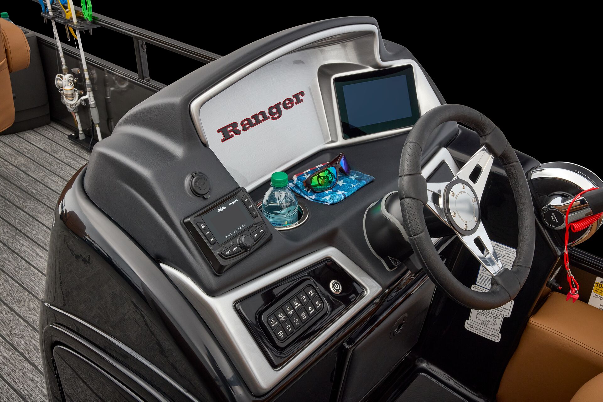 Whether the urge to fish strikes, you want a machine that’ll fit your whole crew and all your gear. The Ranger 220F is a fishing-first pontoon that’s loaded with all the fishing necessities and doesn’t skimp on creature comforts. Every inch of this all-in-one pontoon has something for everyone. For fishing features, fore and aft fishing stations feature livewells, rod and tool holders, and plush, premium seats. The front are captain's chairs with self-leveling arms that swivel 360 degrees. An optional trolling motor lets you sneak up in the shallow where lunkers lurk. A lockable rod box stows your sticks securely out of the way, but ready to go at a moment’s notice.