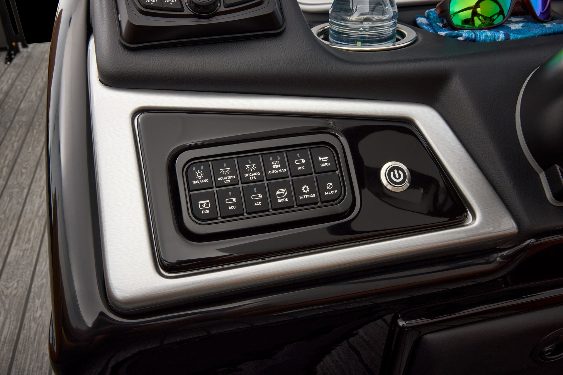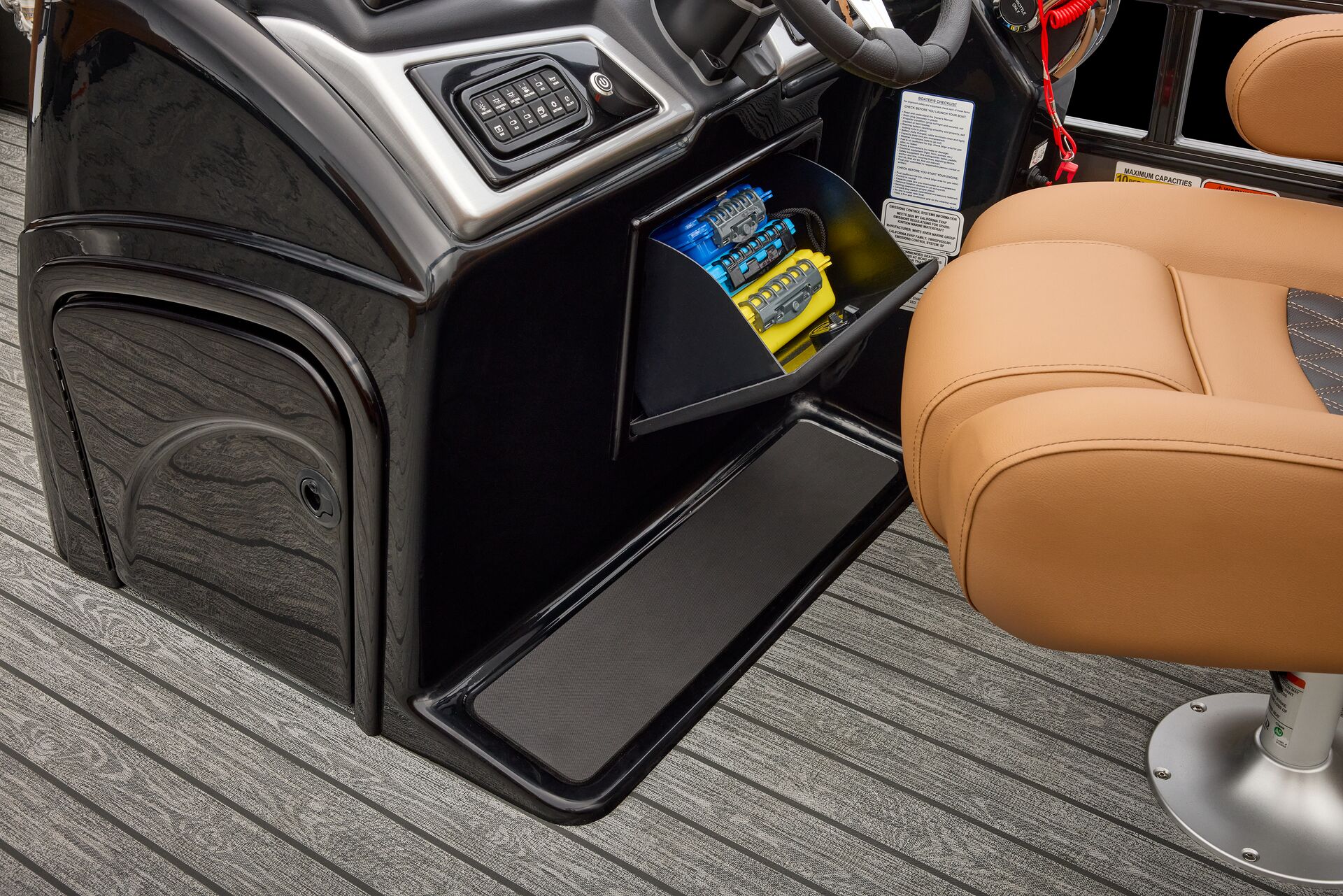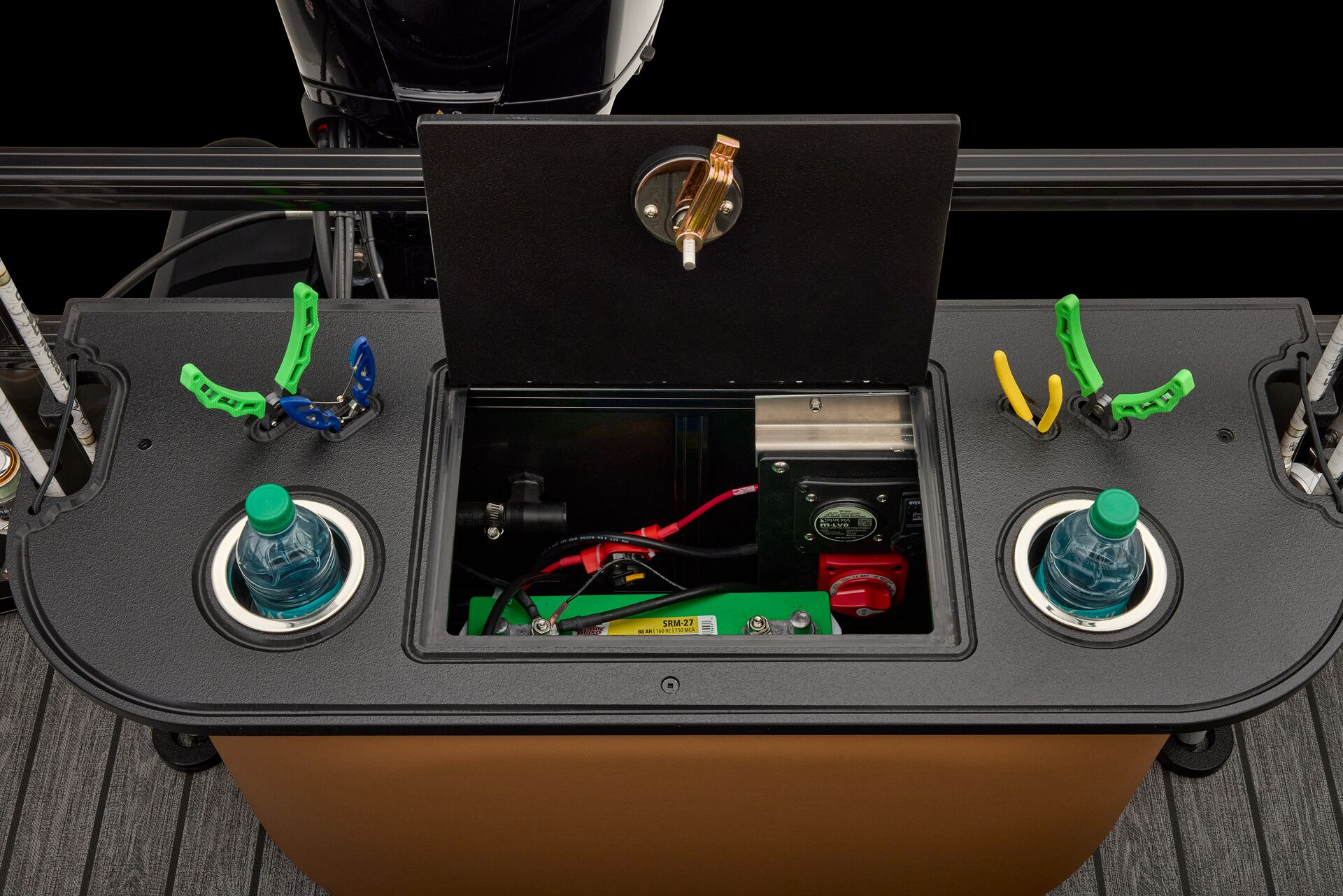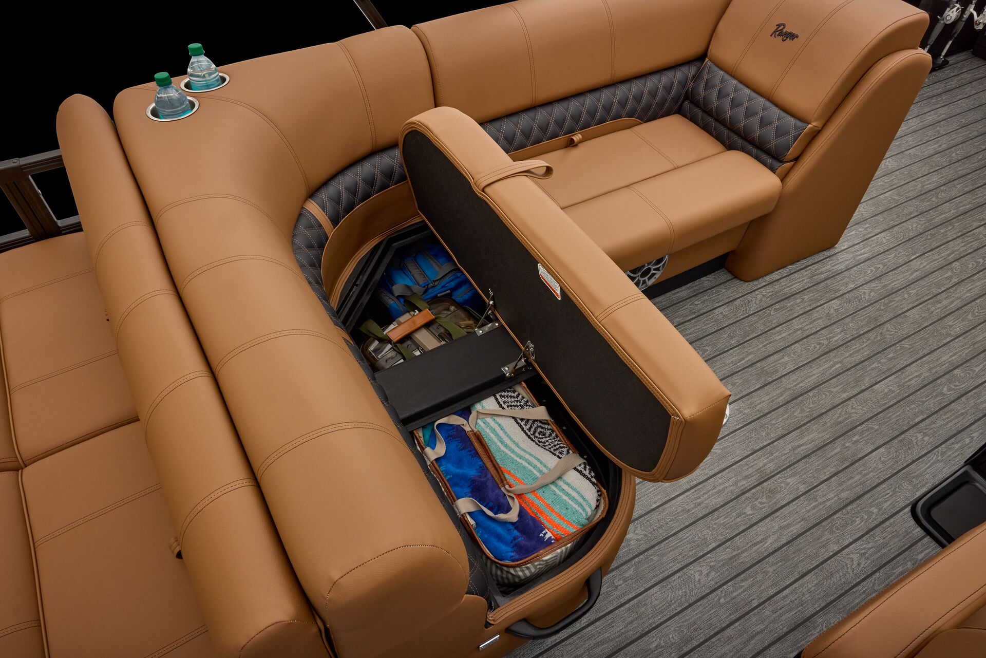 Whether the urge to fish strikes, you want a machine that’ll fit your whole crew and all your gear. The Ranger 220F is a fishing-first pontoon that’s loaded with all the fishing necessities and doesn’t skimp on creature comforts. Every inch of this all-in-one pontoon has something for everyone. For fishing features, fore and aft fishing stations feature livewells, rod and tool holders, and plush, premium seats. The front are captain's chairs with self-leveling arms that swivel 360 degrees. An optional trolling motor lets you sneak up in the shallow where lunkers lurk. A lockable rod box stows your sticks securely out of the way, but ready to go at a moment’s notice.