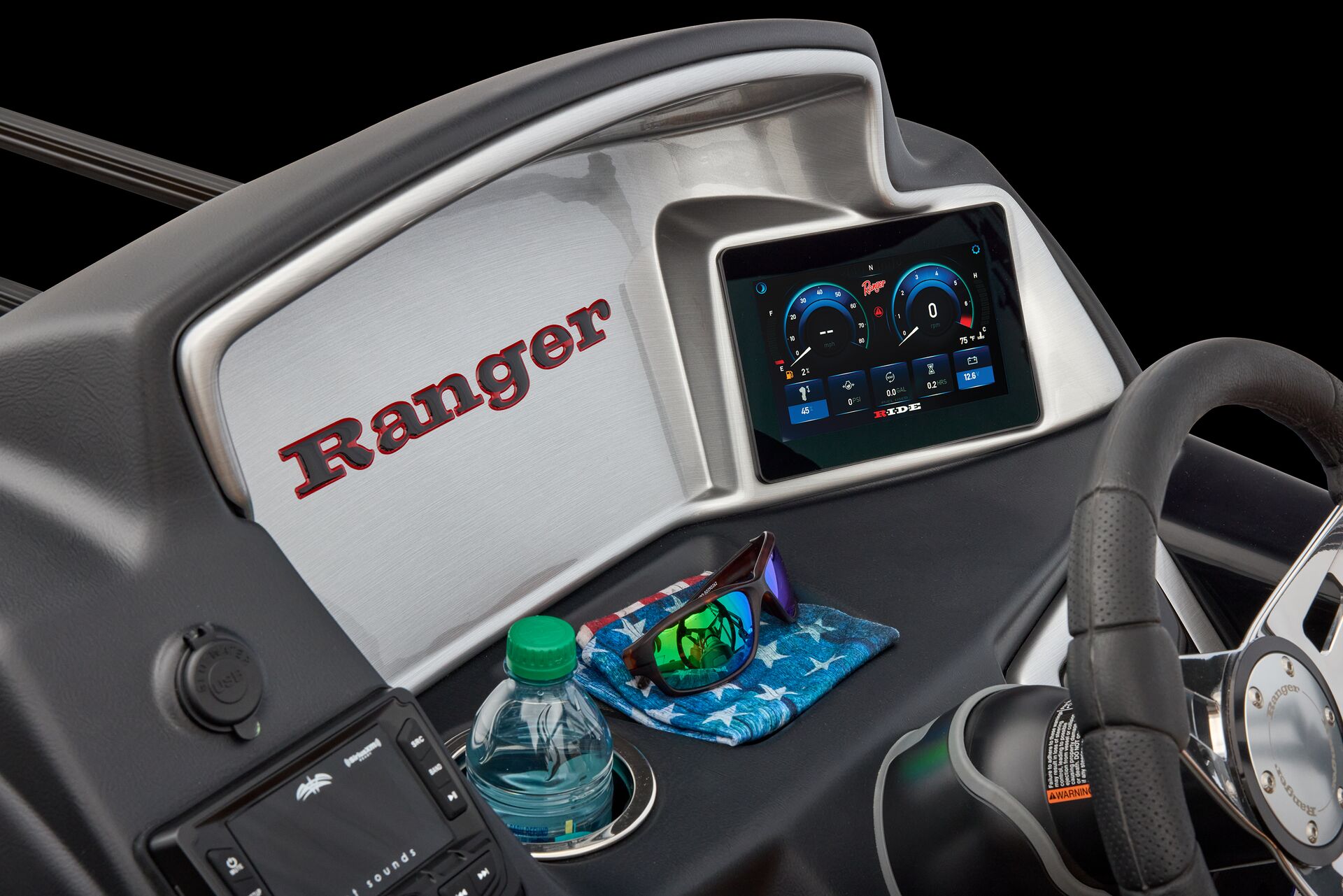 When it’s time to relax, the 220F delivers comfort, convenience, and space in spades. Huge, overstuffed lounges let you sprawl atop hidden storages, including a baitwell under the back sofa. The helm is designed to deliver a comfortable command of the water and every onboard system, from the Wetsounds Bluetooth stereo, and optional fishfinder and the exclusive 7” Ranger System Monitor that displays engine parameters and more.