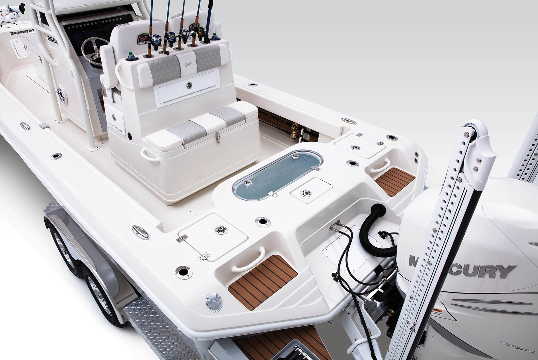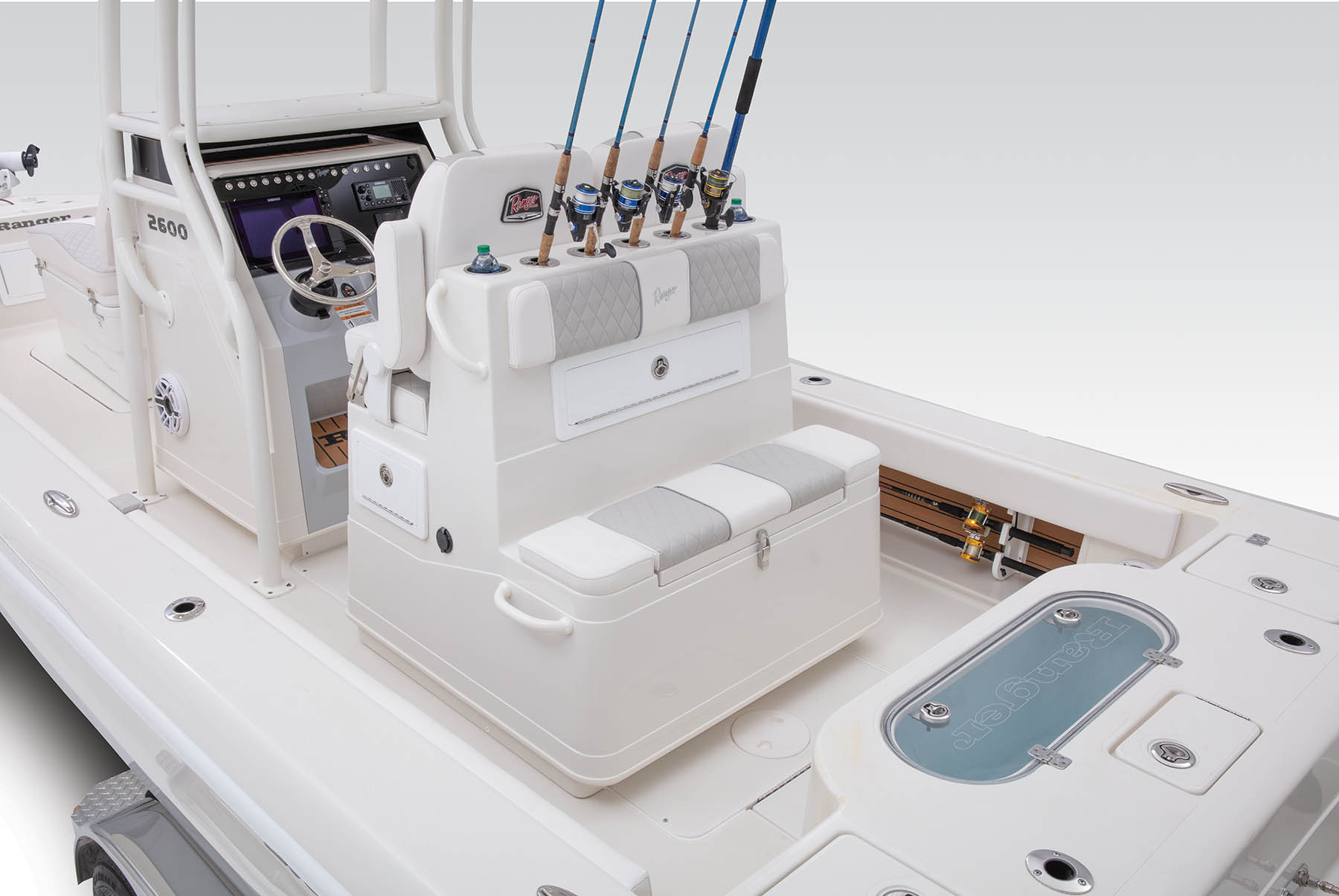 Ranger is unleashing a new predator to the bays and deep blue with the all-new 2600 Bay Ranger. The 2600 is the first open fisherman design in the Bay Series lineup, and carries all the quality, innovation and performance for which Ranger is known. The high-performing hull perfectly complements the spacious cockpit that can be tailored for virtually any style of fishing and delivers unshakable rigidity and peace of mind to take on new horizons and new species. With a standard 400-horsepower outboard, 97 gallons of fuel and dual baitwells, you’ll have ample power and bait on tap to make the most of every day. No matter your latitude, the 2600 Bay Ranger delivers an open cockpit and wide-open performance.